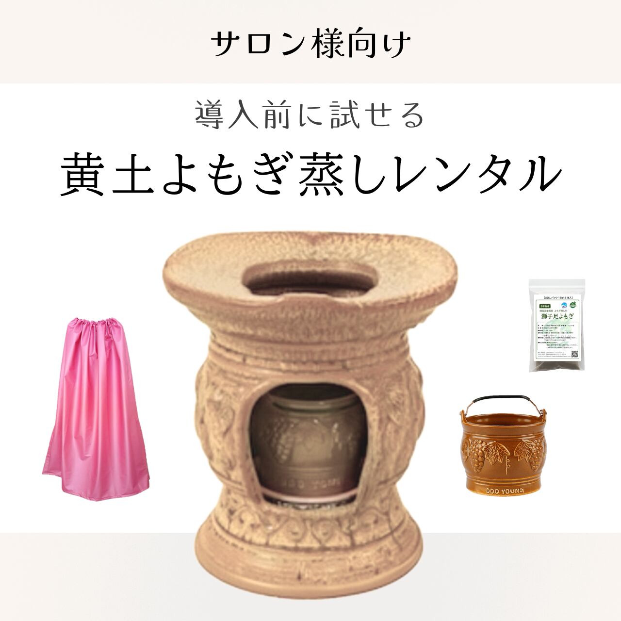 DOOYOUNG製の黄土よもぎ蒸しセットのレンタルです。